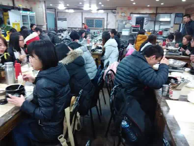 结束了一天的行程,路途的疲乏早已被旅行的快乐吹得风消云散,这不,我们的大部队在品尝特色韩国美食~