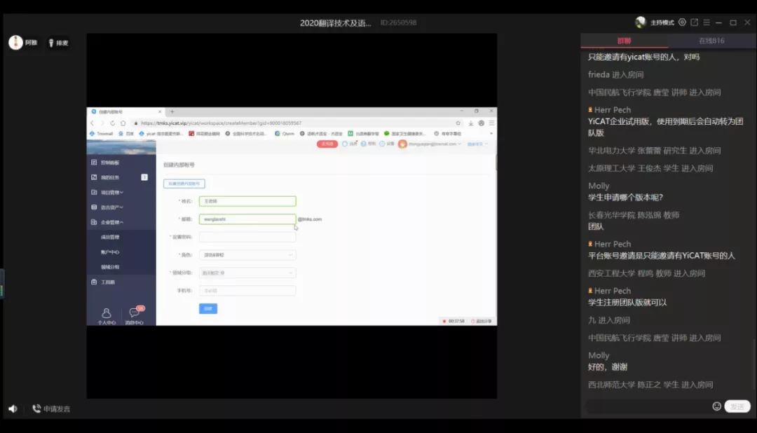 4月11日由上海一者信息科技有限公司的钟雅倩老师详细介绍了目前翻译技术领先的Tmxmall线上翻译软件平台YICAT的操作及应用。钟雅倩老师从项目建库、协同翻译、术语库建立、实时审校等方面进行了详细的讲解和培训。